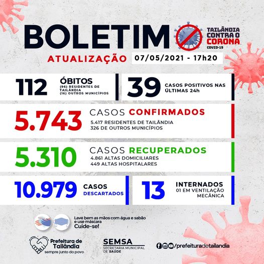 A Prefeitura de Tailândia,nordeste paraense, divulgou na sua página oficial no Facebook na última sexta-feira (07), o Boletim Epidemiológico da Covid-19.