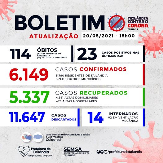A Prefeitura de Tailândia, nordeste paraense, divulgou na sua página oficial no Facebook na tarde desta quinta-feira (20), o Boletim Epidemiológico da Covid-19.