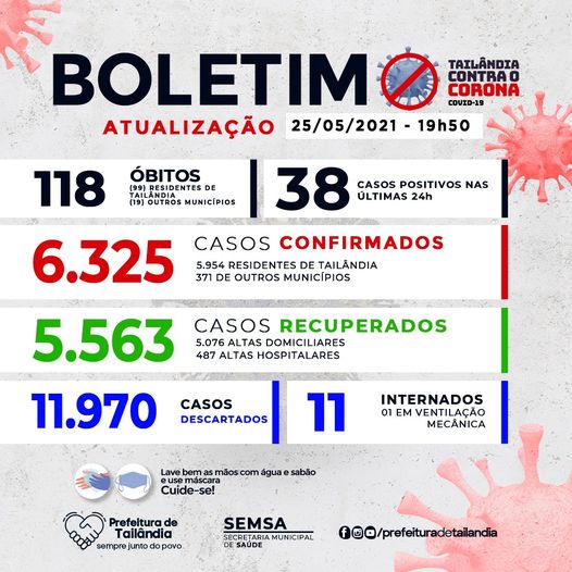 A Prefeitura de Tailândia, nordeste paraense, divulgou na sua página oficial no Facebook na tarde da última terça-feira (25), o Boletim Epidemiológico da Covid-19.