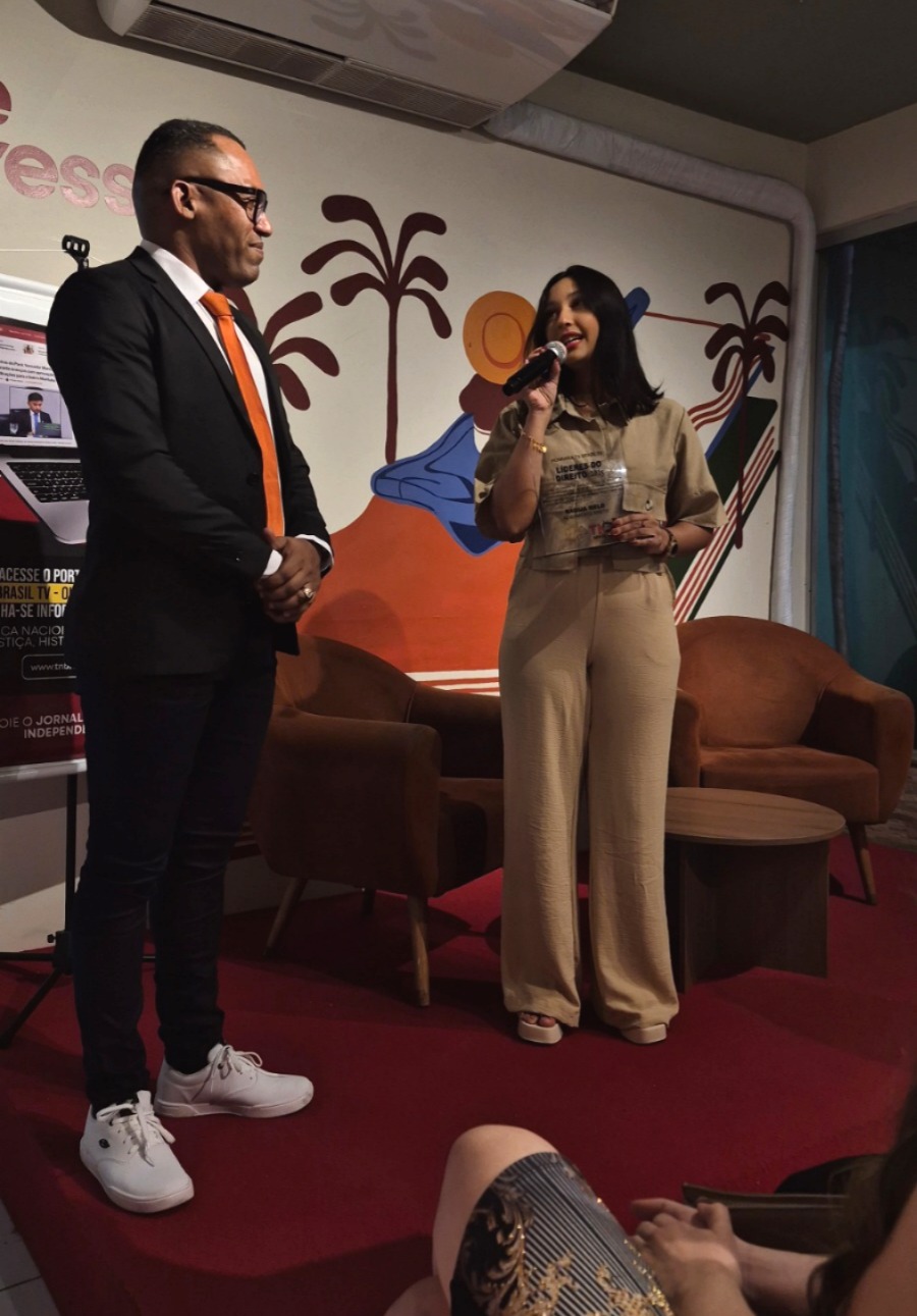 A acadêmica de Direito Radija Melo foi uma das figuras de destaque homenageadas na 1ª Edição da “Honraria TN Brasil TV: Líderes do Direito 2025”. O reconhecimento foi entregue pelo jornalista Taciano Cassimiro, CEO do portal de notícias, em evento realizado na noite de quinta-feira (11), em Belém.