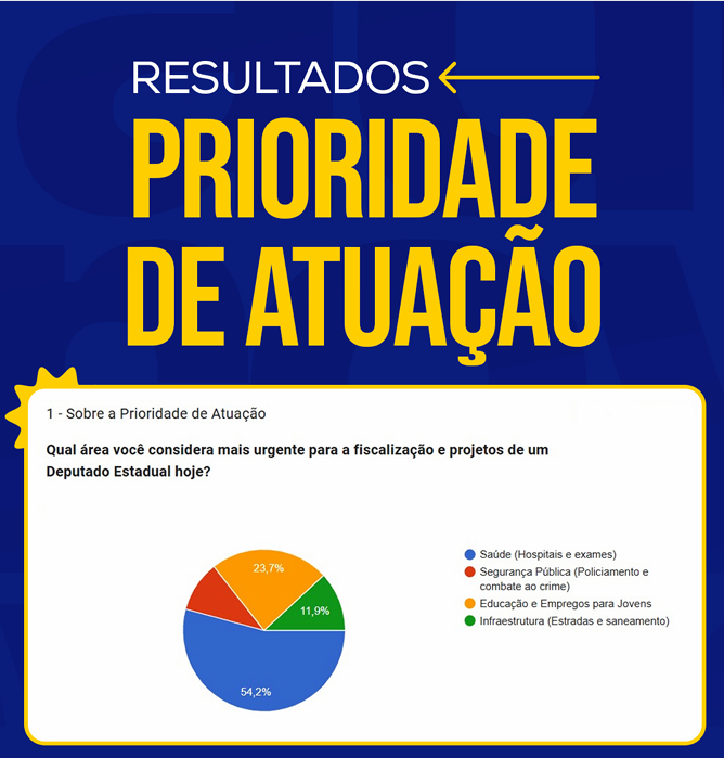 Com uma liderança absoluta de 54,2%, a área de Saúde (hospitais e exames) é a prioridade máxima para mais da metade dos eleitores consultados.