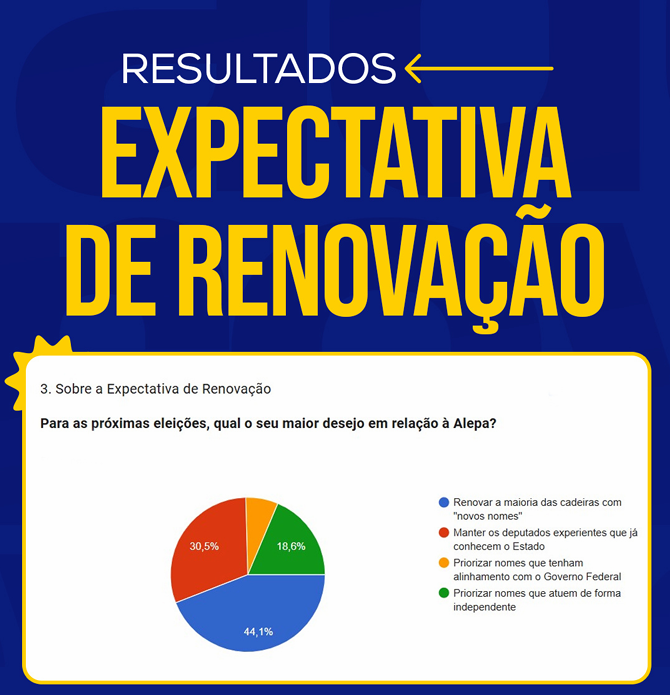 Por outro lado, uma parcela significativa de 30,5% prefere manter os deputados experientes que já possuem conhecimento sobre o Estado.