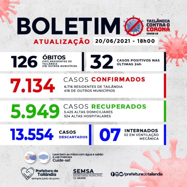 O boletim atualizado registra 7.134 casos confirmados, 5.949 casos recuperados e 126 óbitos.