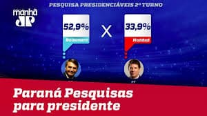 O candidato do PT à Presidência, Fernando Haddad, tem 39,4% dos votos válidos. Os dados constam de pesquisa divulgada nesta sexta-feira (26) pelo instituto Paraná Pesquisas.