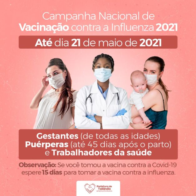Iniciou nesta quinta-feira a vacinação de Gestantes de todas as idades, Puérperas (de até 45 dias após o parto), e Trabalhadores da Saúde, no município de Tailândia.