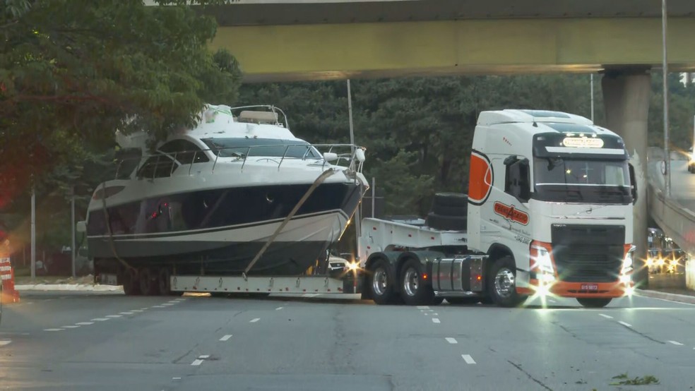 Na manhã desta terça-feira (25), Carreta que transportava uma lancha ficou presa em um viaduto na Zona Sul de São Paulo, umas das parte da lancha bateu na estrutura do viaduto, e ficando presa bloqueando a Avenida Pedro Álvares Cabral no sentido Pinheiros.