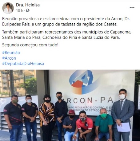 A deputada estadual Heloisa Guimarães, do DEM (Democratas), esteve reunida na última segunda-feira (03) com o presidente da Arcon (Agência de Regulação e Controle dos Serviços), Dr. Euripedes Reis, e com taxistas da região dos Caetés.