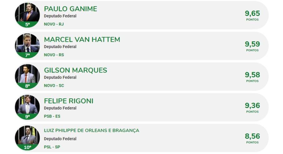 Com base nas informações em fontes oficiais como os sites da Câmara, do Senado e dos Tribunais de Justiça, até o momento o ranking apresenta a liderança ampla do partido NOVO, talvés o único partido de direita do Brasil, fundado em 2011 e registrado no TSE (Tribunal Superior Eleitoral), em 2015.