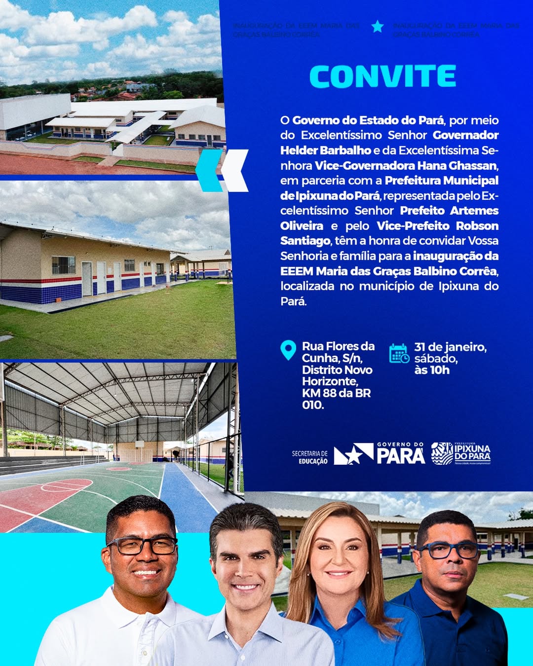O município de Ipixuna do Pará, no nordeste paraense, se prepara para a inauguração da Escola Estadual de Ensino Médio Maria das Graças Balbino Corrêa, localizada no Distrito Novo Horizonte.