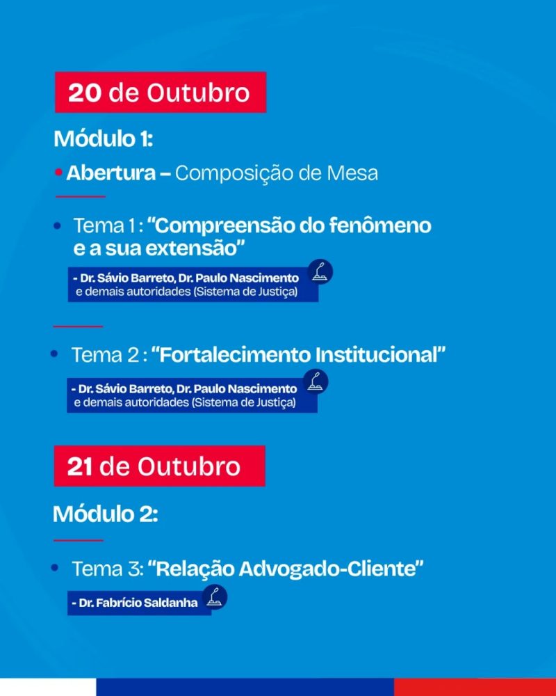 Estão entre os palestrantes do evento o presidente da OAB-PA, Sávio Barreto; o presidente da Comissão de Apoio à Advocacia Criminal, Paulo Nascimento; o advogado criminalista Fabrício Saldanha; e a especialista em Direito Bancário Natália Moraes. Os convidados irão debater o fortalecimento institucional, a relação advogado-cliente e estratégias para reagir juridicamente às fraudes. Também foram convidadas diversas autoridades para o debate.