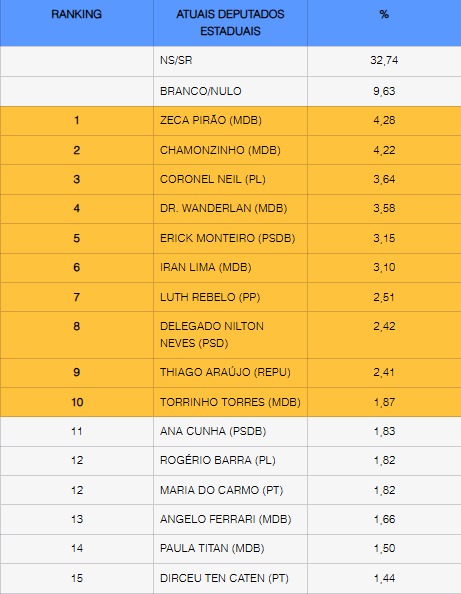 TOP15 Atuais Deputados Estaduais