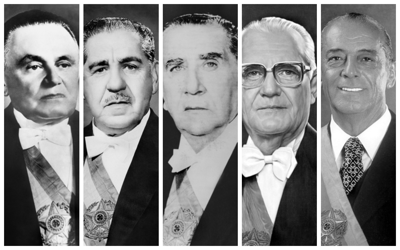 A Ditadura Militar no Brasil, que durou de 1964 a 1985, foi governada por cinco presidentes militares, todos eleitos de forma indireta (pelo Congresso Nacional, que funcionava como Colégio Eleitoral, e não pelo voto popular).