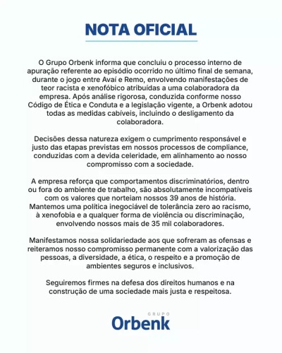Conforme divulgado pelo portal O Liberal e confirmado pela empresa, o Grupo Orbenk informou em nota que decidiu pelo desligamento da colaboradora. A empresa afirmou que as atitudes de Ana Costa são incompatíveis com seu Código de Ética e Conduta, ressaltando ter tolerância zero a qualquer forma de racismo, xenofobismo ou discriminação.