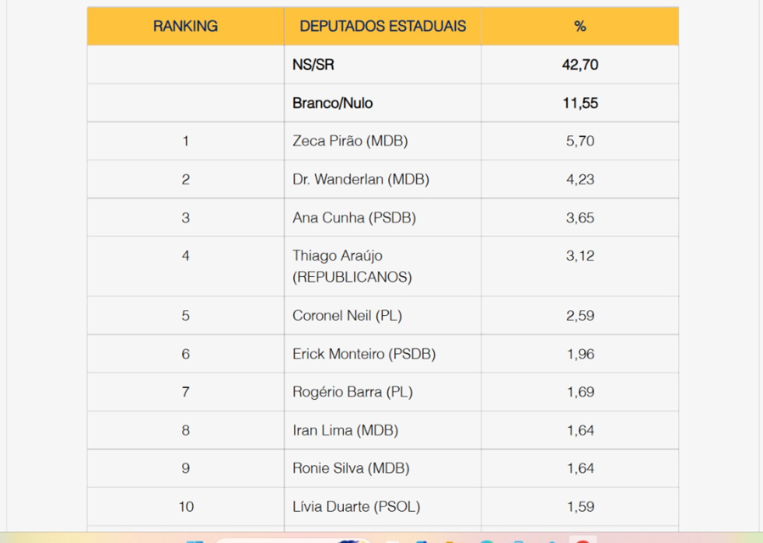 1º Zeca Pirão (MDB), 2º Dr. Wanderlan (MDB), 3º Ana Cunha (PSDB), 4º Thiago Araújo (REPU), 5° Coronel Neil (PL), 6º Erick Monteiro (PSDB), 7º Rogério Barra (OL), 8º Iran Lima (MDB), 9º Ronie Silva (MDB) e 10º Lívia Duarte (PSOL).